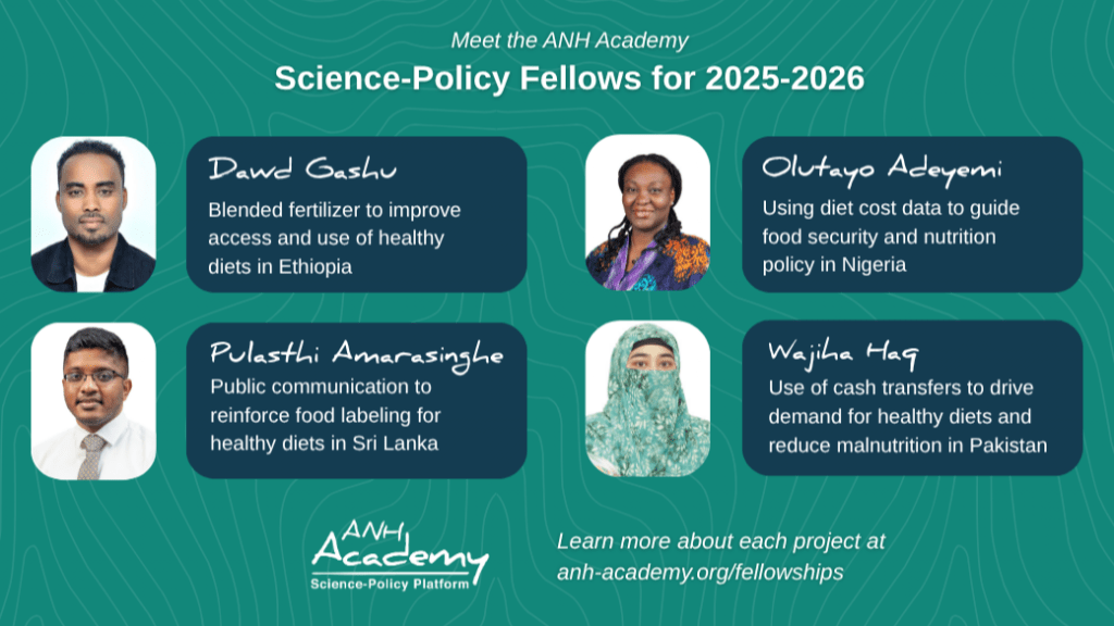 The Agriculture, Nutrition & Health (ANH) Academy is pleased to announce the second round of Science-Policy Fellowships, funding three researchers for one year of full-time work to: